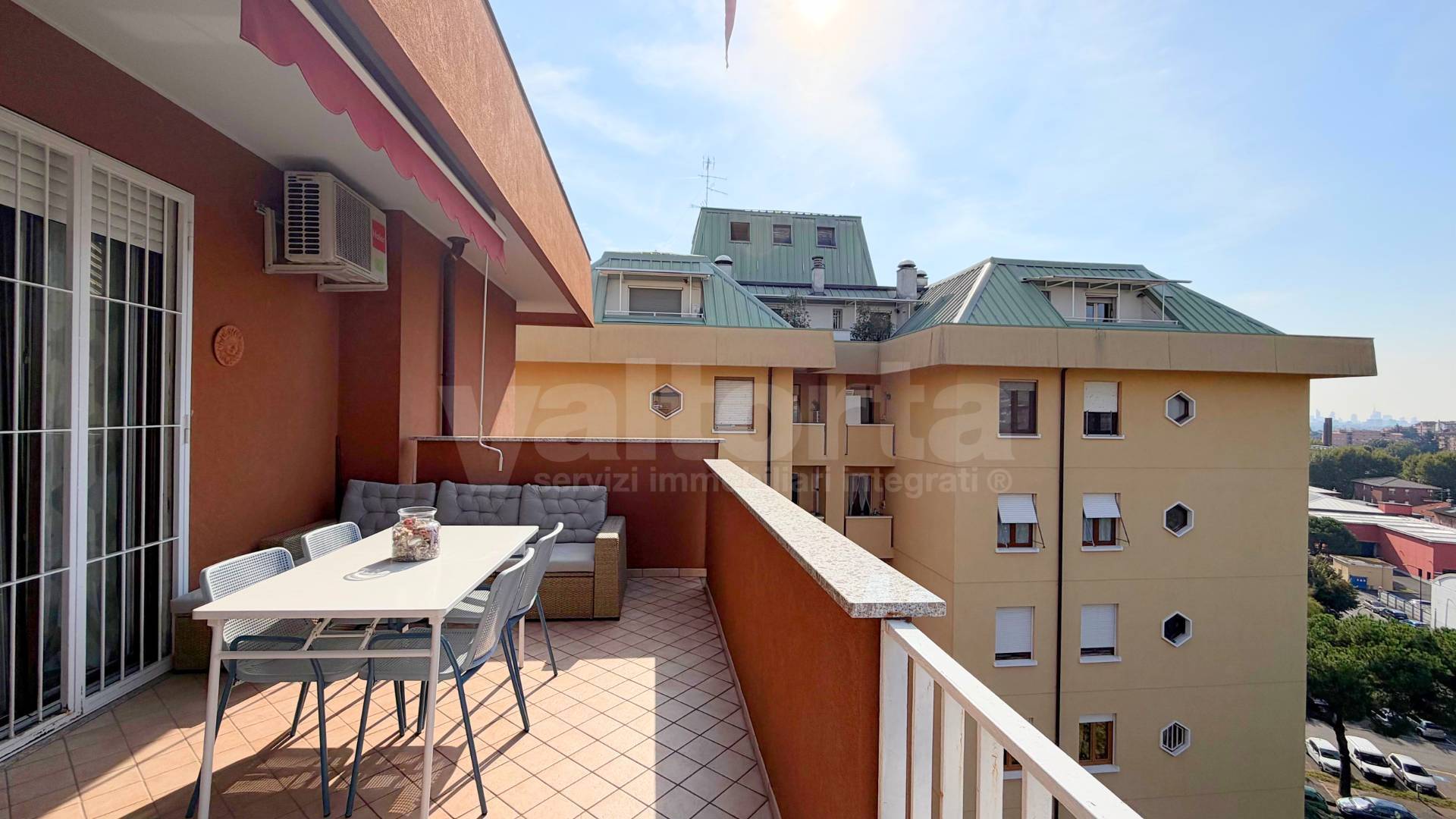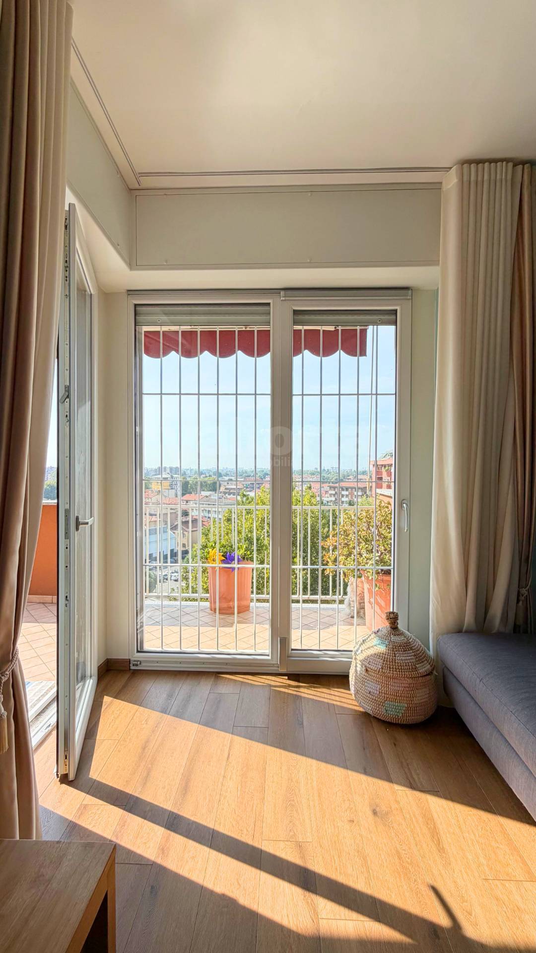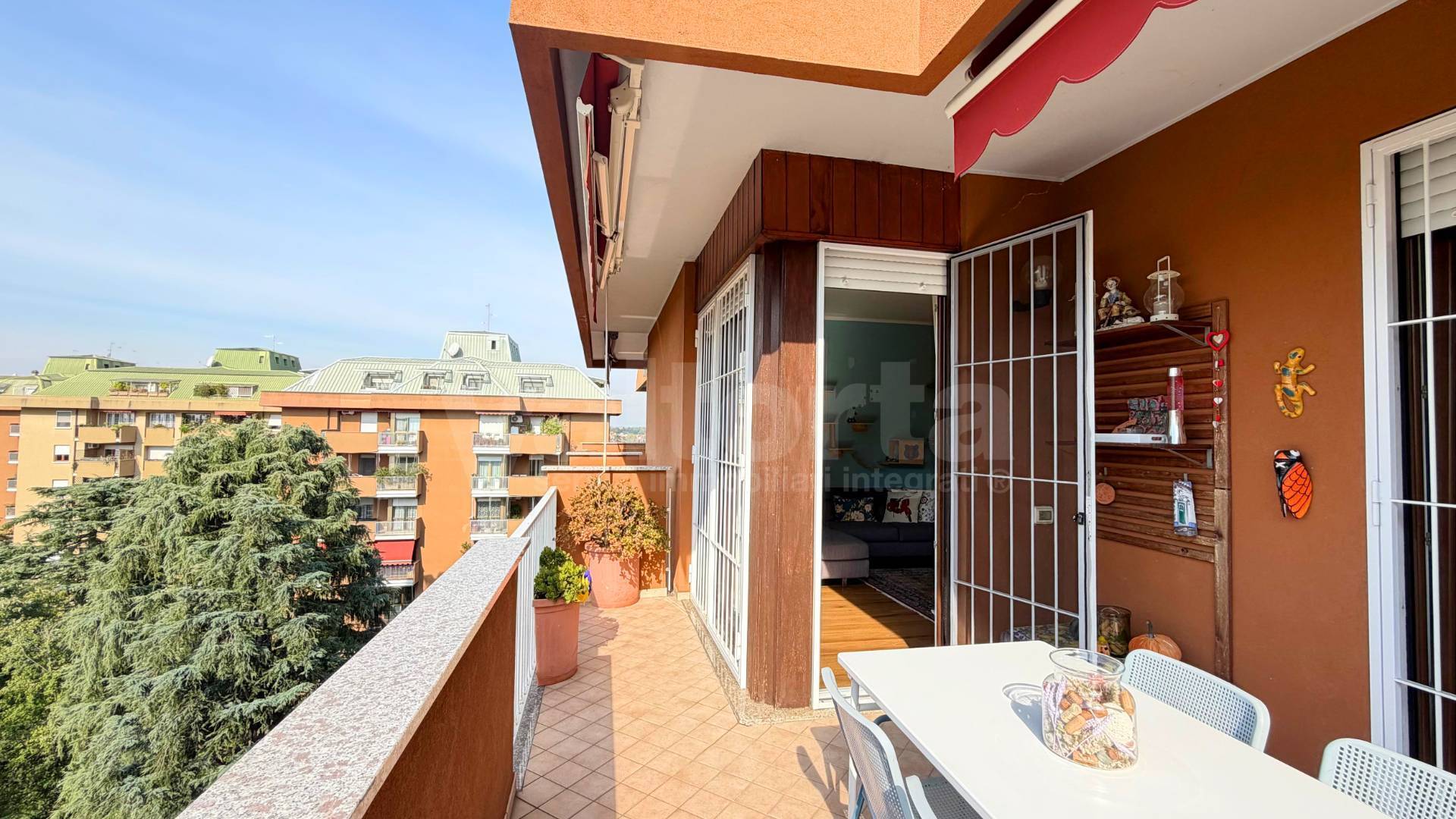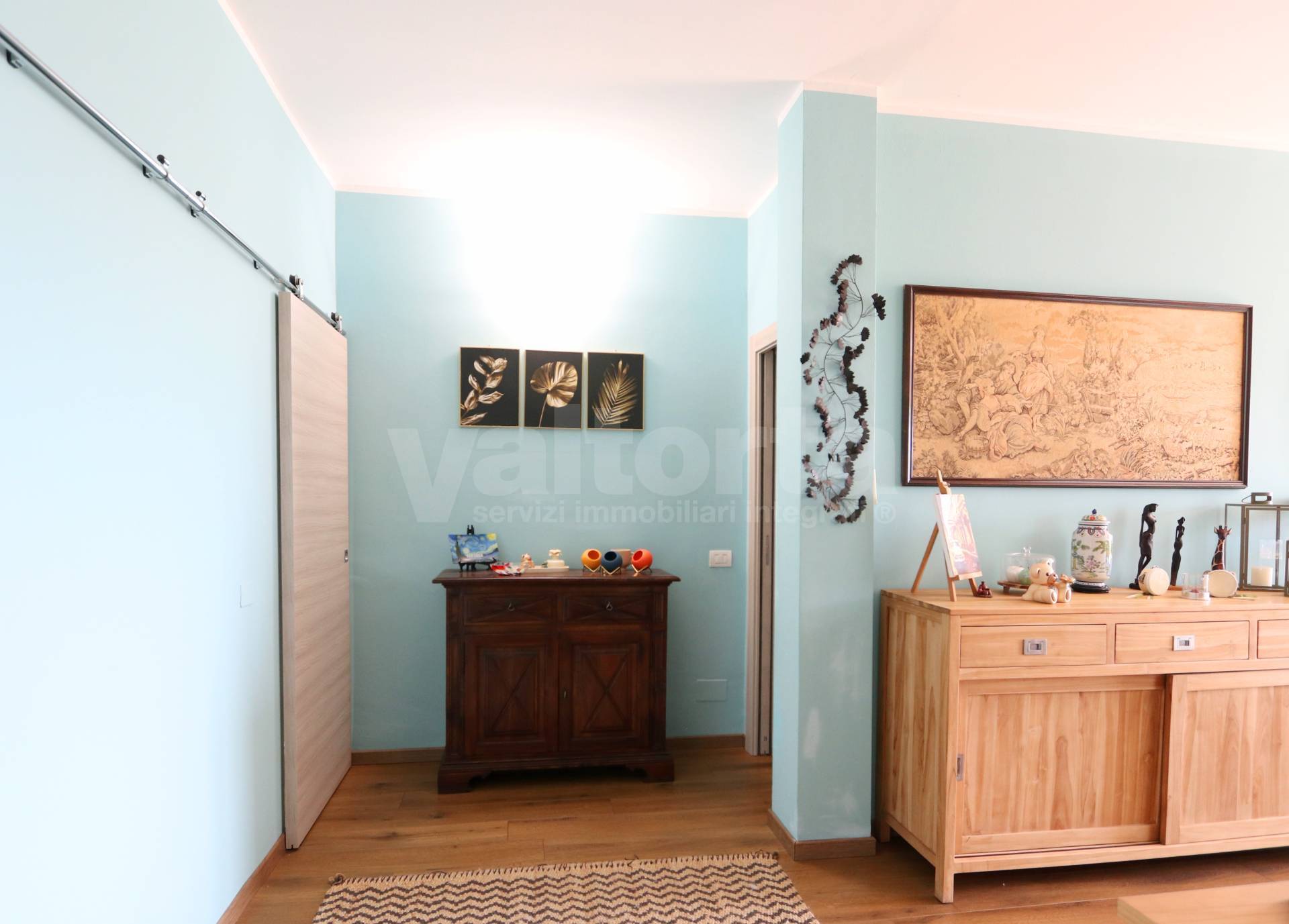 L’ingresso introduce ad un ampio soggiorno che si apre su un terrazzo panoramico, perfetto per rilassarsi o ricevere ospiti.