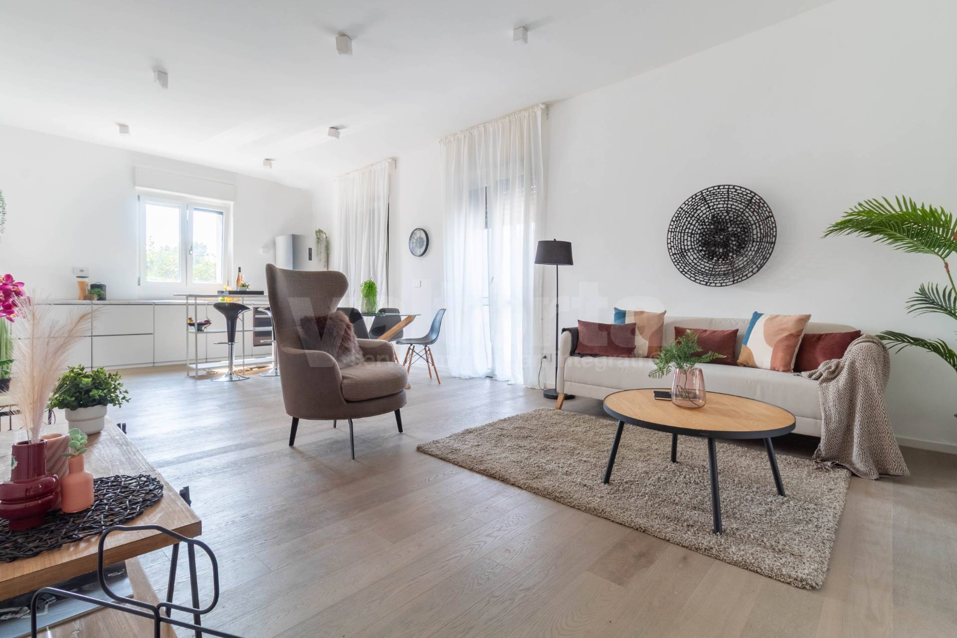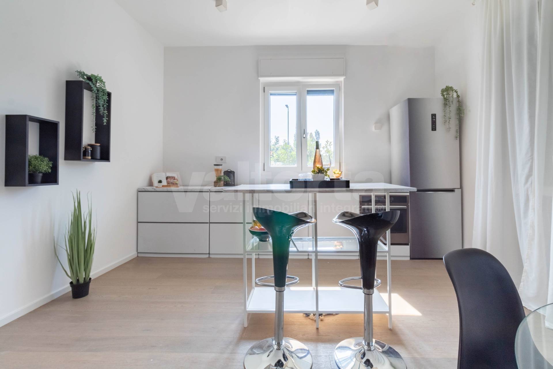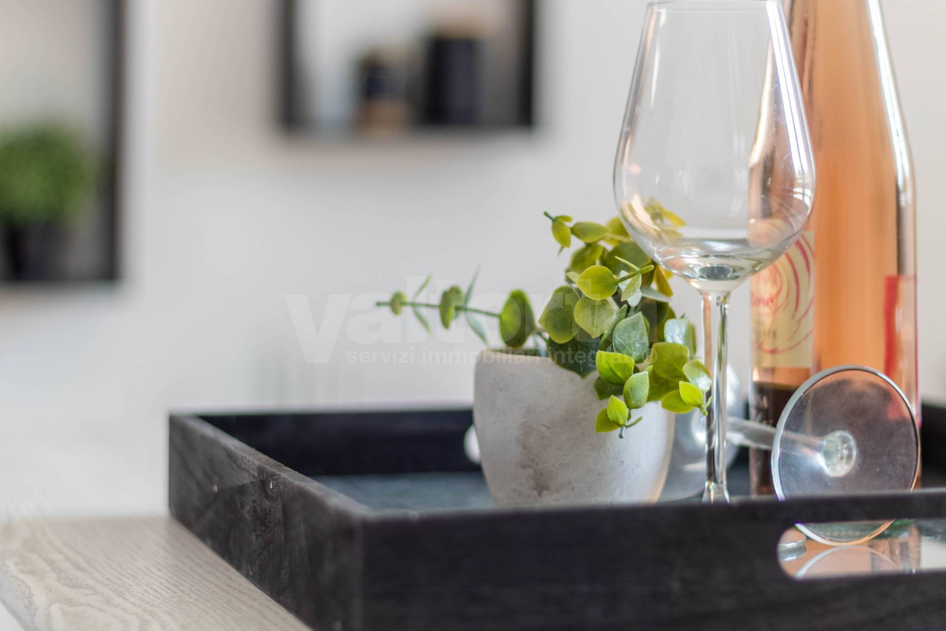 Al piano d’ingresso, l’immobile presenta un’ampia zona living con cucina a vista, che si affaccia direttamente su un ampio dehor e sul giardino privato, oltre al bagno di servizio al piano.
